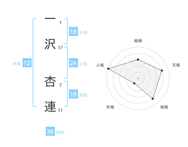 一沢 杏連さんを姓名の画数から五運を鑑定