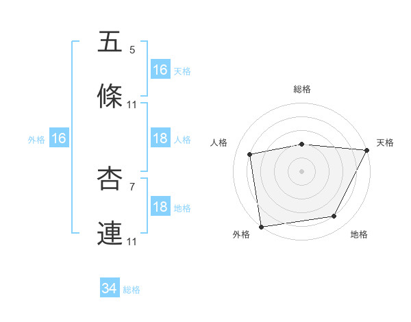 五條 杏連さんの天格は16画の5点!