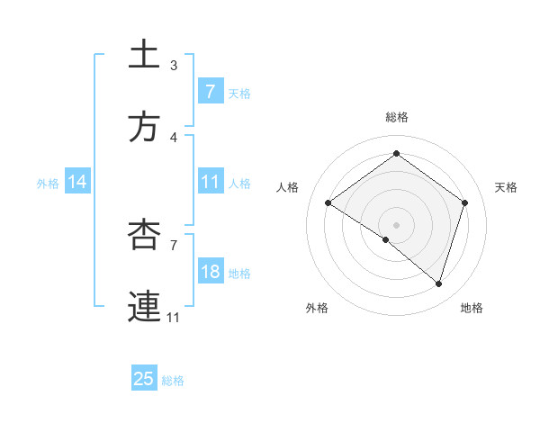 土方 杏連さんの総格は25画の4点!