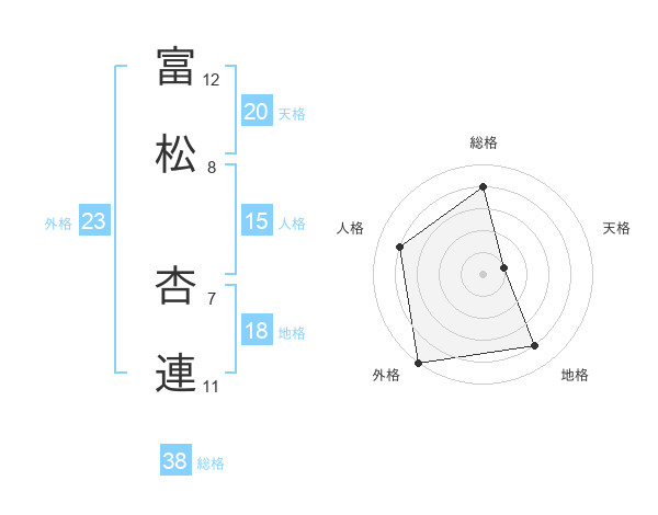 富松 杏連さんの総格は38画の4点!