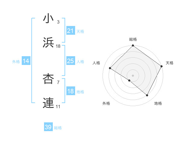小浜 杏連さんの天格は21画の5点!