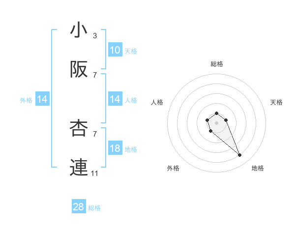 小阪 杏連さんを姓名の画数から五運を鑑定