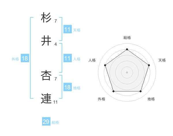杉井 杏連さんを姓名の画数から五運を鑑定