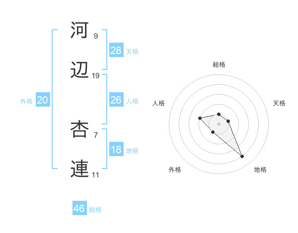 河辺 杏連さんの総格は46画の1点!