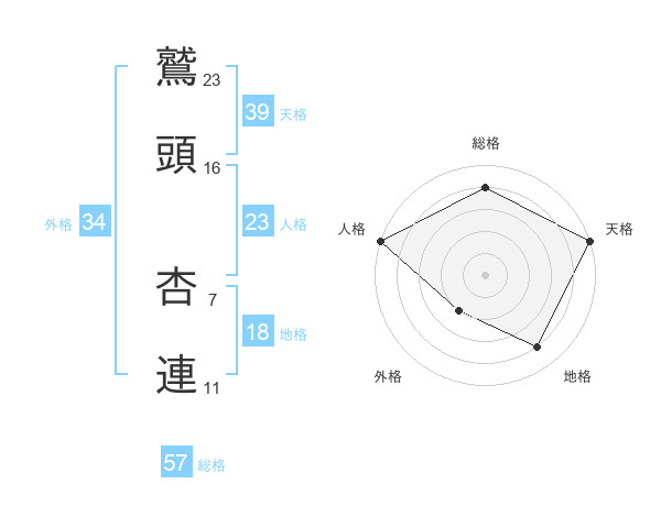 鷲頭 杏連さんの天格は39画の5点!