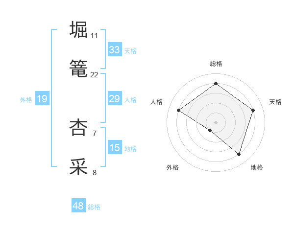 堀篭 杏采さんの外格は19画の1点!