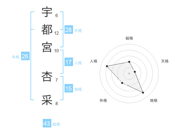 宇都宮 杏采さんを姓名の画数から五運を鑑定