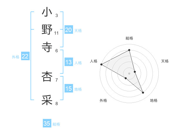 小野寺 杏采さんを姓名の画数から五運を鑑定
