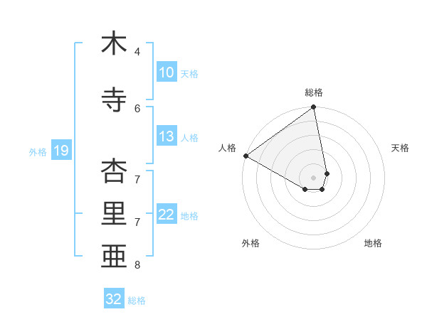 木寺 杏里亜さんの総格は32画の5点!
