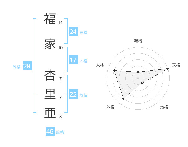 福家 杏里亜さんの天格は24画の5点!