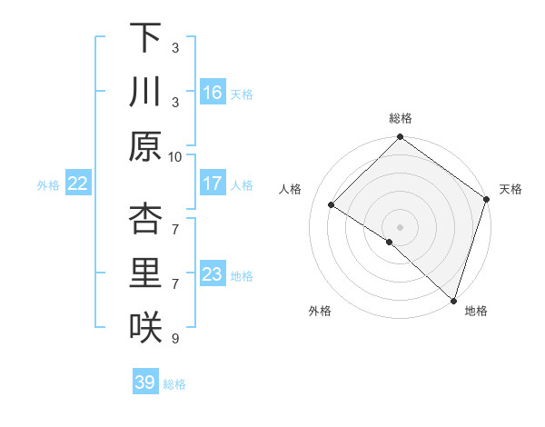 下川原 杏里咲さんの総格は39画の5点!