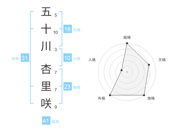 五十川 杏里咲さんの総格は41画の5点!