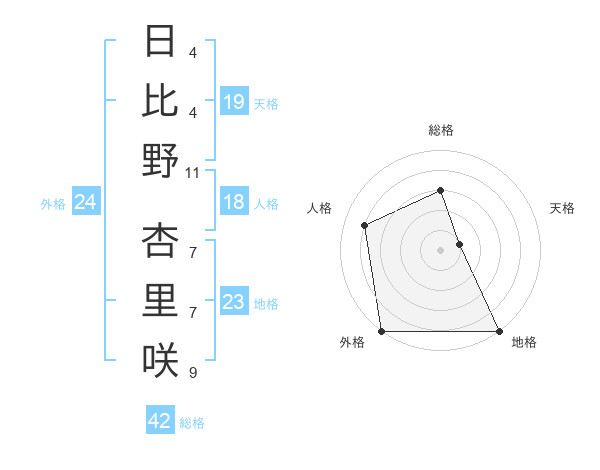 日比野 杏里咲さんを姓名の画数から五運を鑑定
