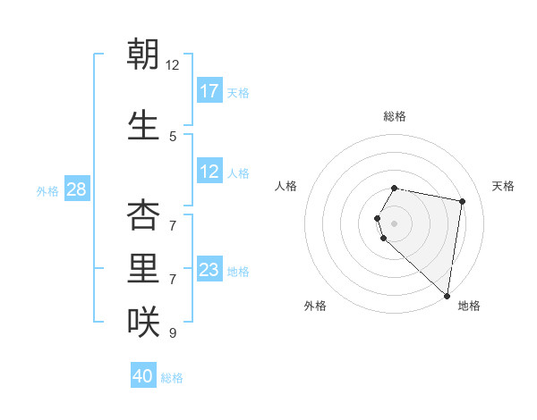 朝生 杏里咲さんの地格は23画の5点!