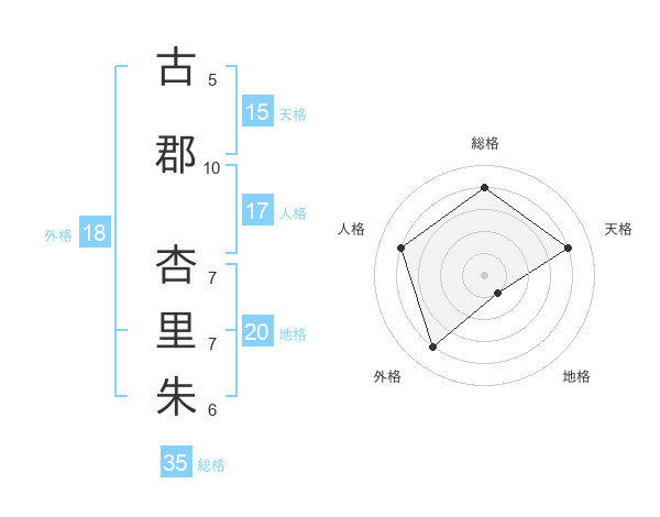 古郡 杏里朱さんを姓名の画数から五運を鑑定