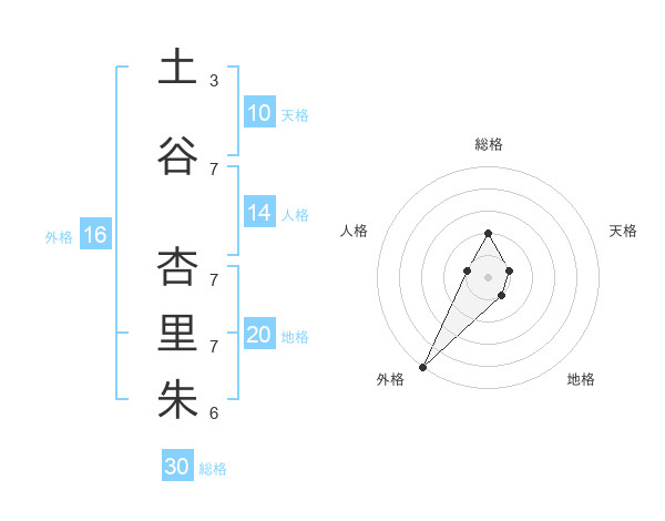 土谷 杏里朱さんを姓名の画数から五運を鑑定