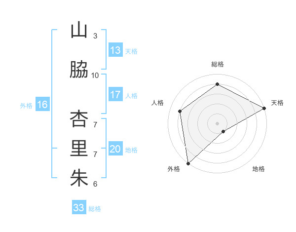 山脇 杏里朱さんを姓名の画数から五運を鑑定