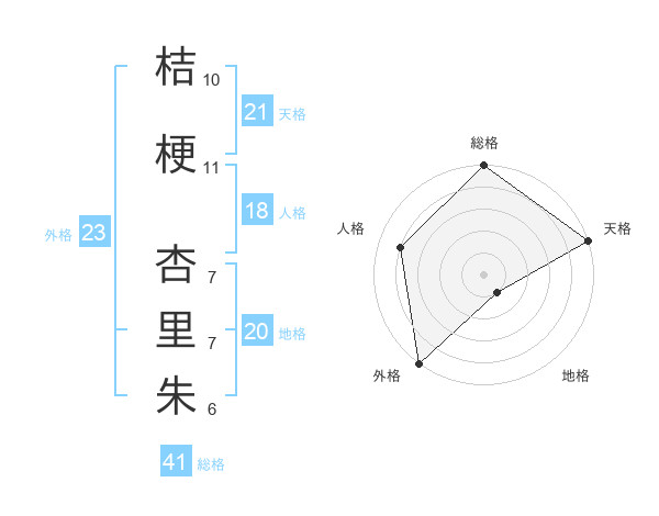 桔梗 杏里朱さんの天格は21画の5点!