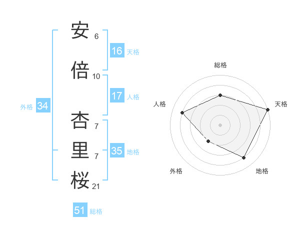 安倍 杏里桜さんを姓名の画数から五運を鑑定