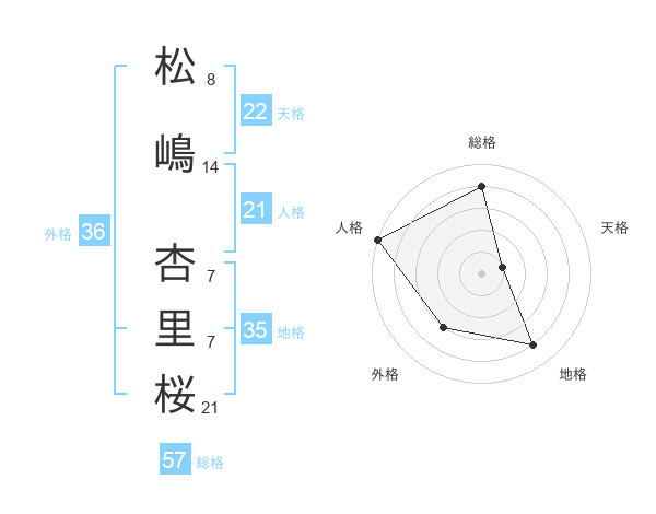 松嶋 杏里桜さんを姓名の画数から五運を鑑定