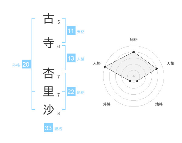 古寺 杏里沙さんを姓名の画数から五運を鑑定