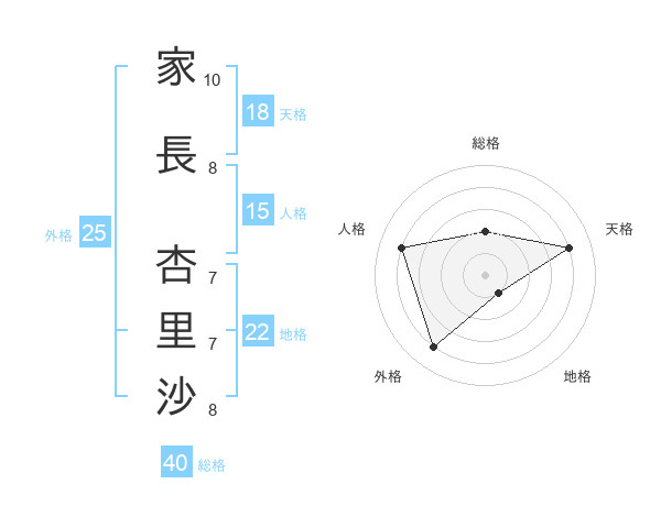 家長 杏里沙さんの総格は40画の2点!