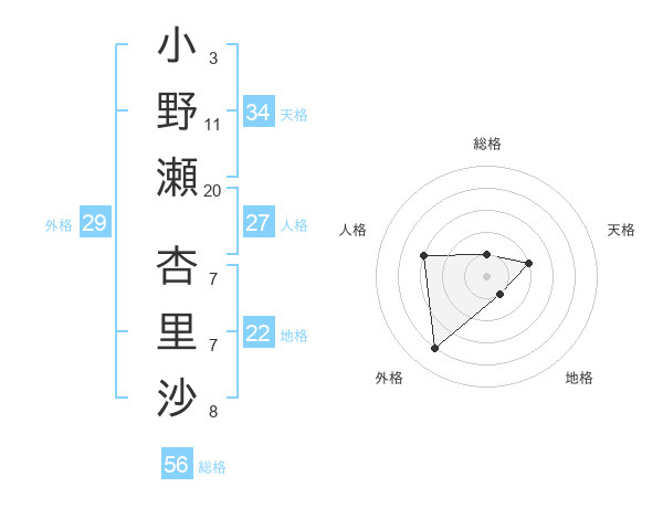 小野瀬 杏里沙さんを姓名の画数から五運を鑑定