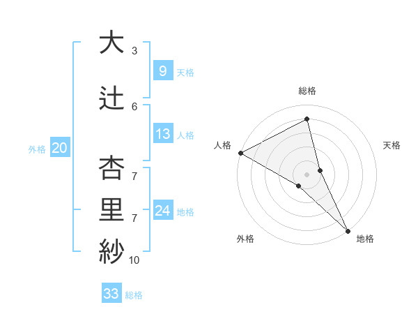 大辻 杏里紗さんの総格は33画の4点!