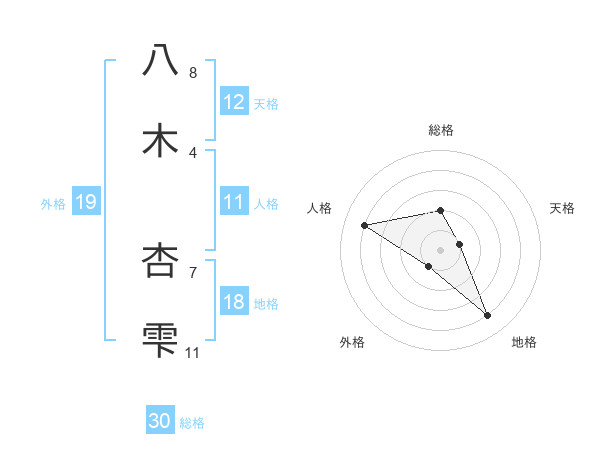 八木 杏雫さんの総格は30画の2点!