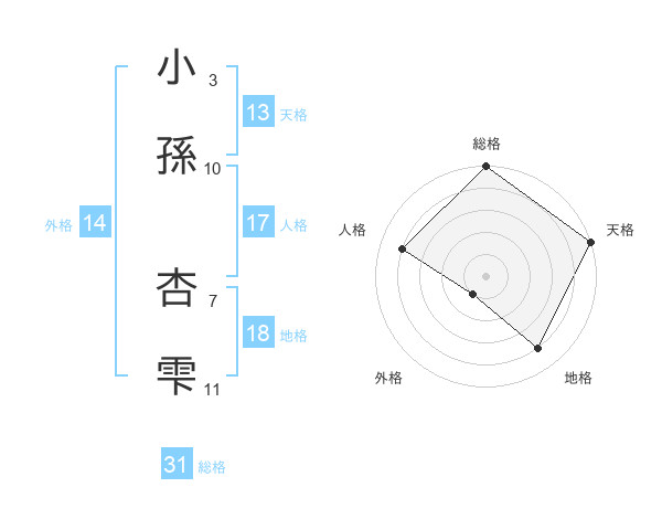 小孫 杏雫さんの総格は31画の5点!