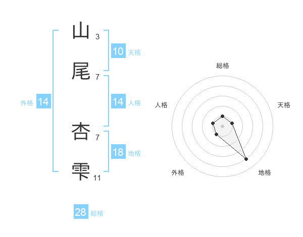 山尾 杏雫さんの総格は28画の1点!