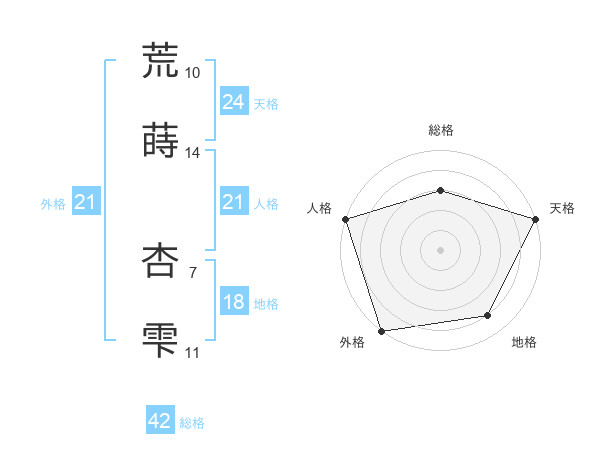 荒蒔 杏雫さんの外格は21画の5点!