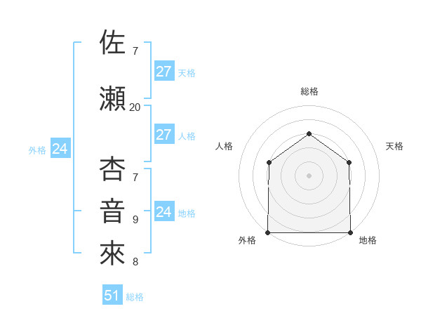 佐瀬 杏音來さんを姓名の画数から五運を鑑定