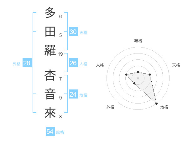 多田羅 杏音來さんを姓名の画数から五運を鑑定