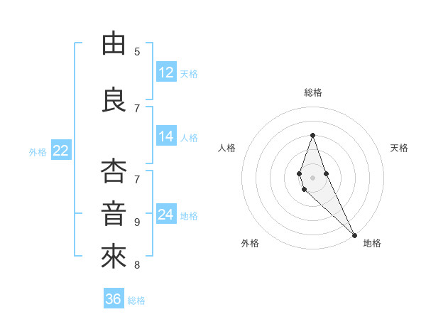 由良 杏音來さんの総格は36画の3点