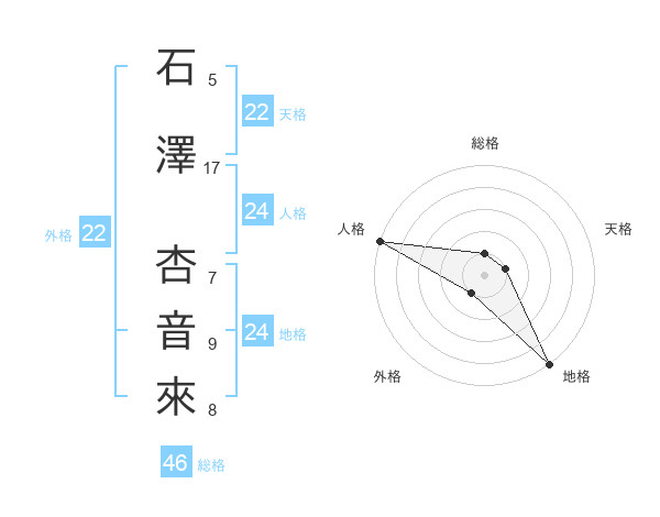 石澤 杏音來さんの外格は22画の1点!