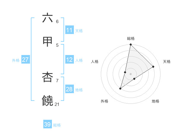 六甲 杏饒さんの総格は39画の5点!