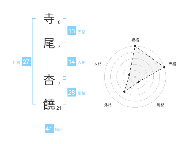寺尾 杏饒さんの外格は27画の3点!