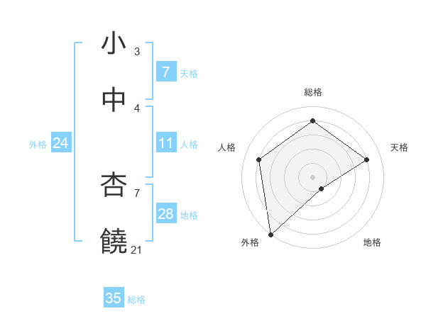 小中 杏饒さんを姓名の画数から五運を鑑定