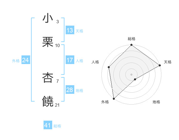 小栗 杏饒さんを姓名の画数から五運を鑑定