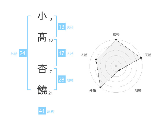 小髙 杏饒さんを姓名の画数から五運を鑑定