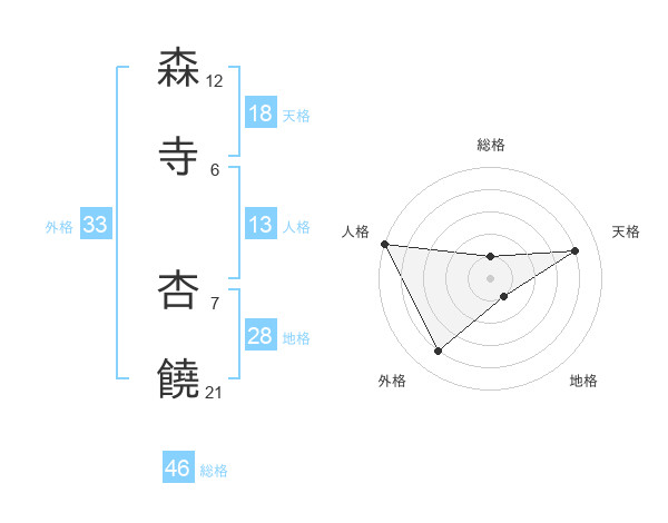 森寺 杏饒さんの総格は46画の1点!