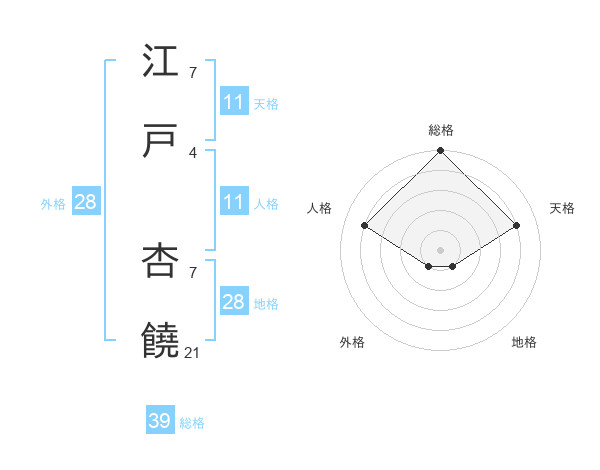 江戸 杏饒さんを姓名の画数から五運を鑑定