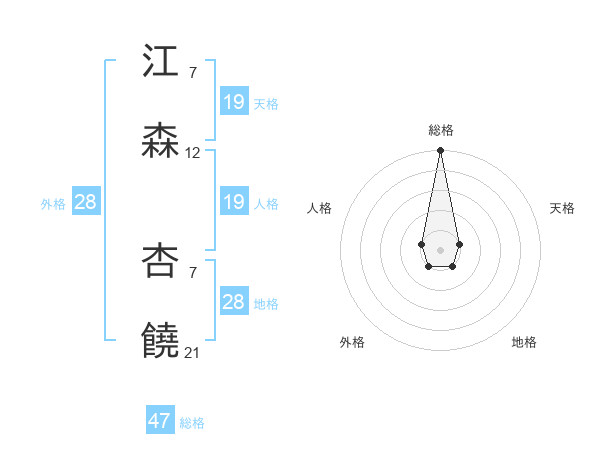 江森 杏饒さんを姓名の画数から五運を鑑定