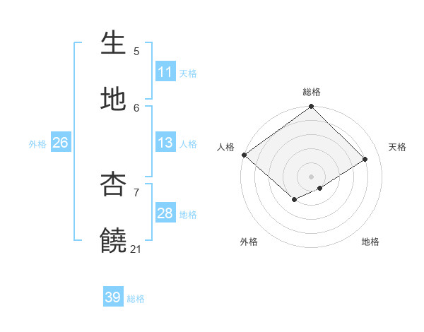 生地 杏饒さんを姓名の画数から五運を鑑定