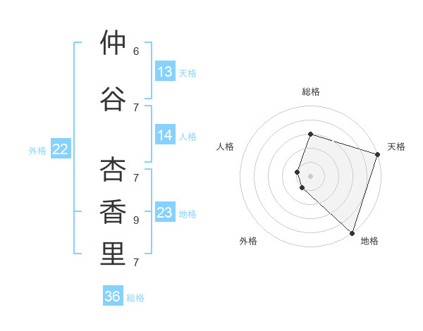仲谷 杏香里さんの天格は13画の5点
