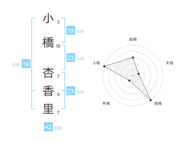 小橋 杏香里さんの外格は19画の1点!