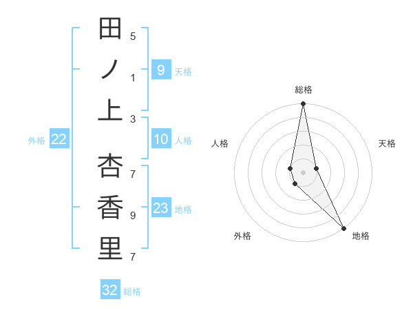 田ノ上 杏香里さんの総格は32画の5点!