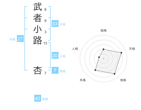 武者小路 杏さんの天格は33画の4点!