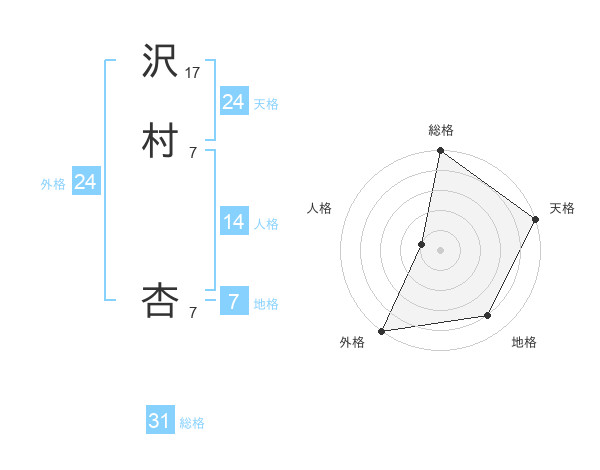 沢村 杏さんの総格は31画の5点!